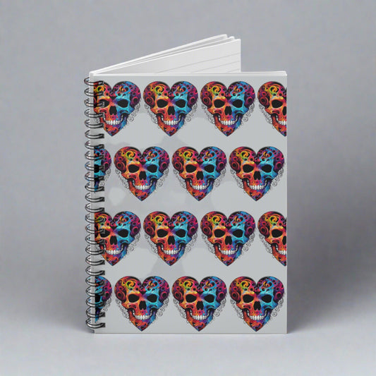 Colorful Heart Skull Design Spiral Notebook - Ruled Lines