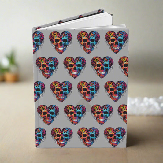 Colorful Heart Skull on Gray Hardcover Journal Matte