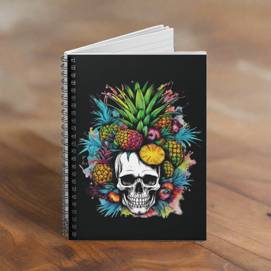 Colorful Mamba Skull Design on Black Spiral Notebook - Ruled Lines