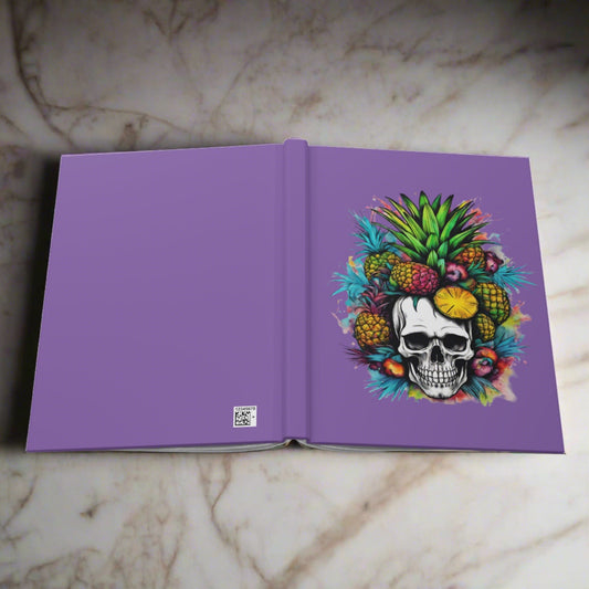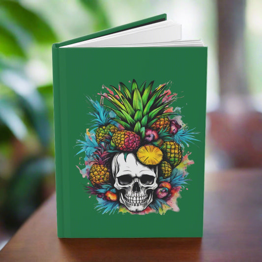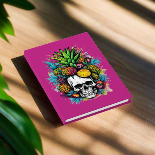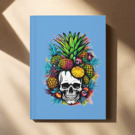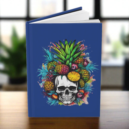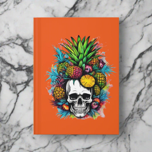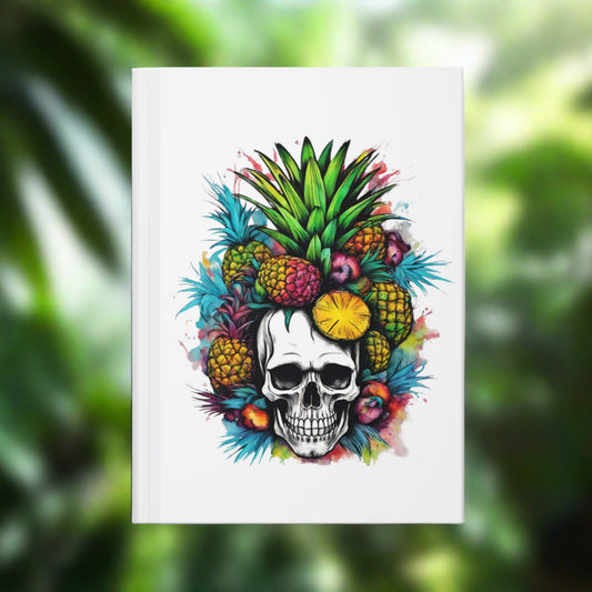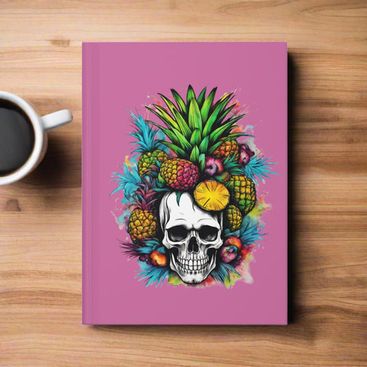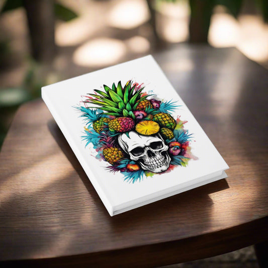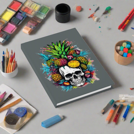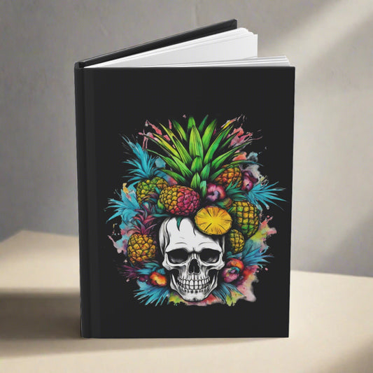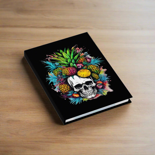 Colorful Pineapple Skull on Black Hardcover Journal Matte