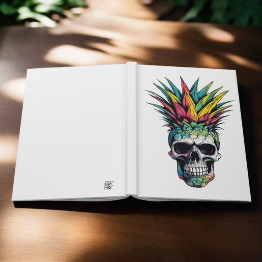 Colorful Pineapple Skull on White Hardcover Journal Matte