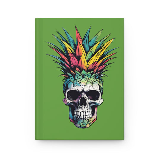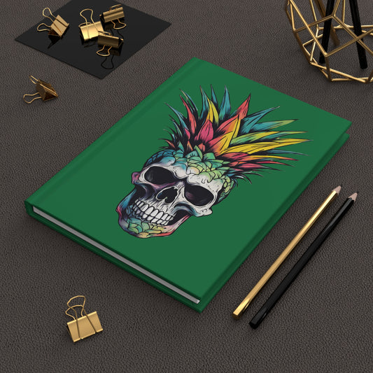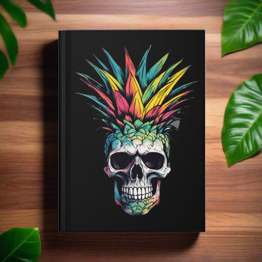 Colorful Pineapple Skull on Dark Green Hardcover Journal Matte