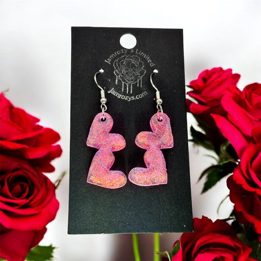 Handmade Glittery Hot Pink Ink Hearts Dangle Earrings