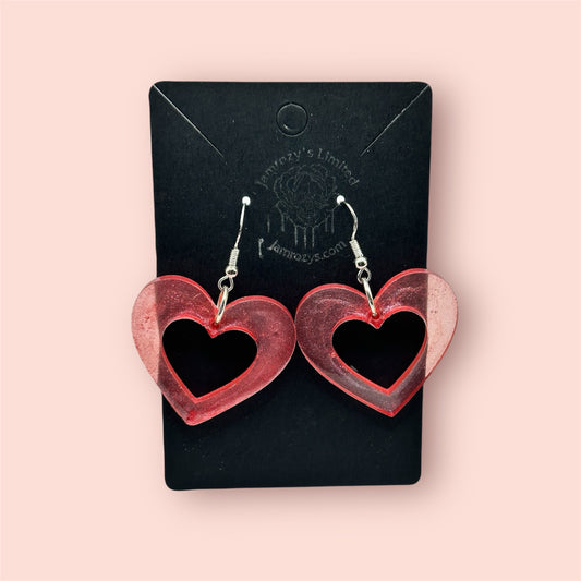Pinkish-Red Semi-See Through Hollow Heart Dangle Earrings Handmade
