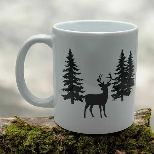 11oz White Ceramic Mug with Blue Deer Winter Wonderland