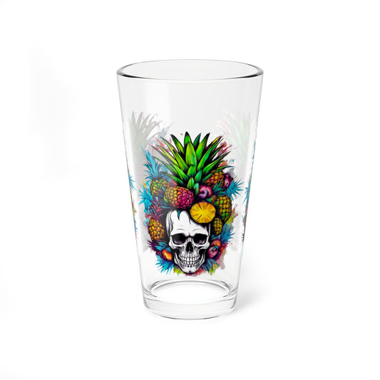 Colorful Pineapple Skull Mixing Glass, 16oz Pint glass