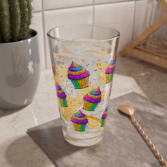 Cupcakes Mixing Glass, 16oz Pint Glass- 90's Nostalgia Neon