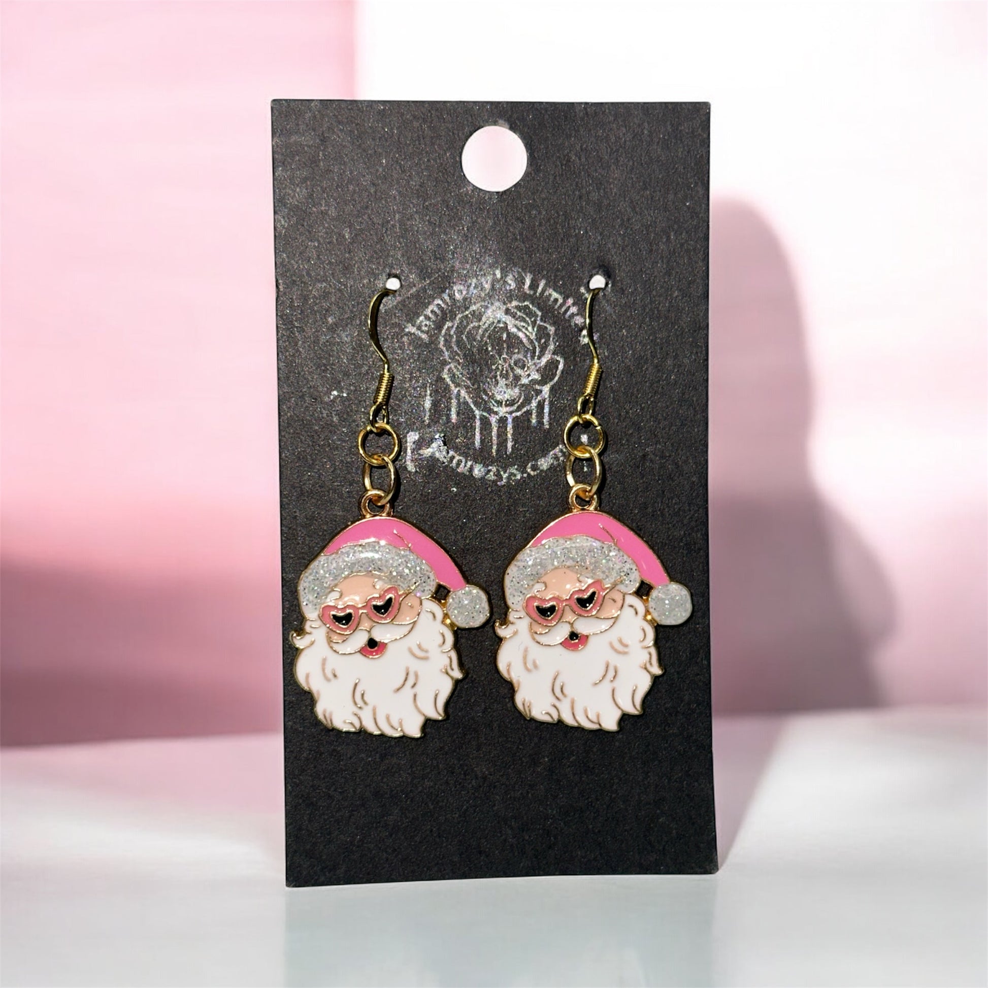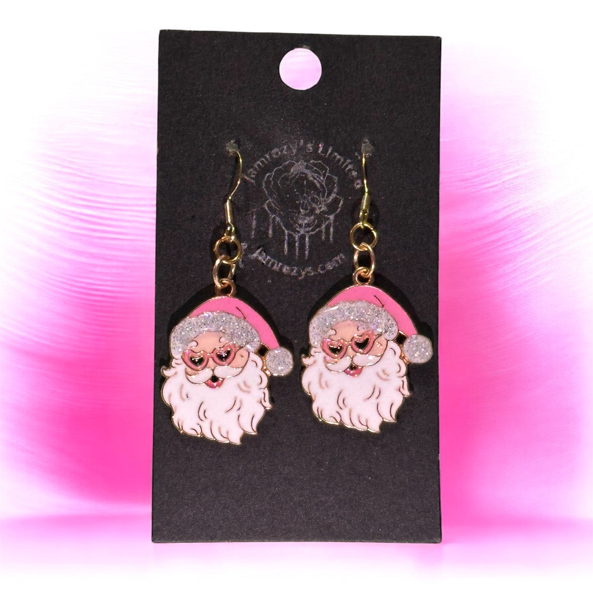 Bring festive cheer with a pink twist! These exclusive custom charms feature a retro-style Santa with heart-shaped sunglasses, a glittering pink hat, and luxe 18k gold-plated hooks.